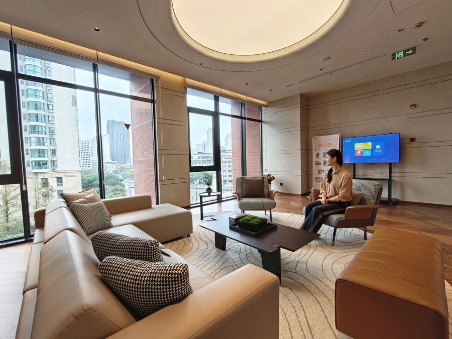 “这是一个‘居住+商业+休闲+配套’的复合型生活场域,拎包就可入住。”现场工作人员介绍,200余套全明户型配置了全景落地窗和国际大牌家电、卫浴系统,引入了管家式服务体系,提供会客休闲、商务接待等多项定制服务;按《上海市保租房管理办法》定价的租金,是同地段同品质项目租金的90%,并支持住房公积金支付,租期以长租为主。